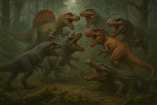 🌑 Scena 1: Cisza przed śmiercią Dolina Mgły. Czas: godzina 3:17 nad ranem. Księżyc zawisł nisko nad koronami prehistorycznych drzew. Mgła pełzła nad ziemią jak duch zmarłej planety….