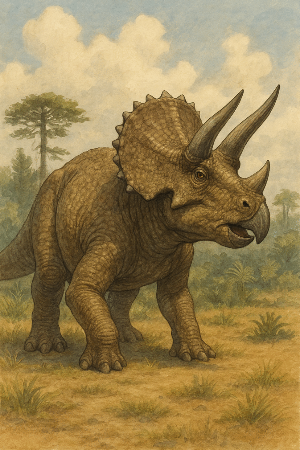 Triceratops to jeden z najlepiej poznanych dinozaurów rogatych. Znaleziono dziesiątki czaszek, kości, a nawet ślady zachowań stadnych. Niektóre okazy sugerują choroby, starość, złamania. Triceratopsy nie były tylko potężne – były kruche, jak wszystko co żyje.